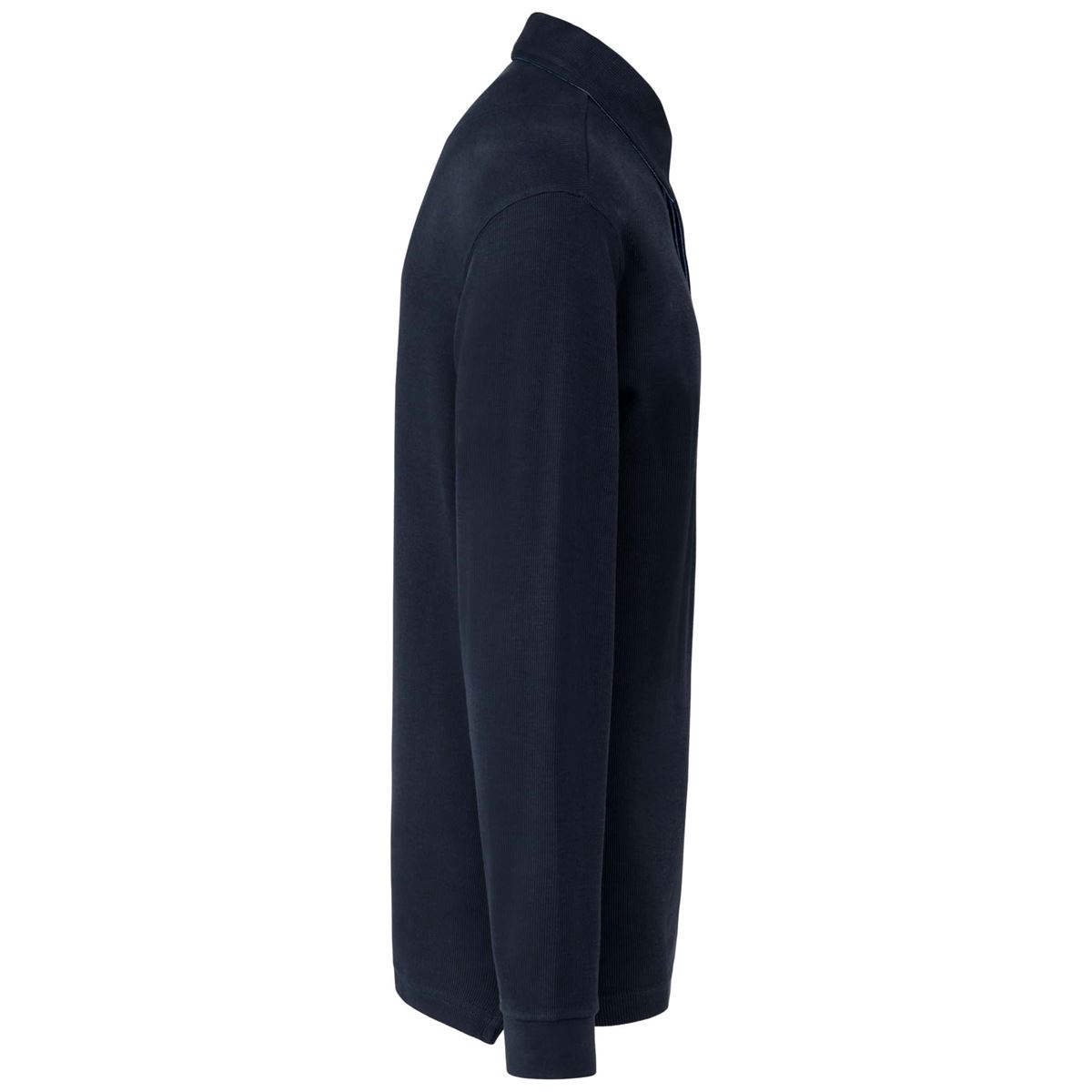 100 % katoen met 1x1 rib (Heather : 85% katoen / 15% viscose). Zijsplitjes en binnenkant kraag in gevlochten visgraatmotief. Knooplijst met 3 knopen. Afwerking met dubbele stiksels.