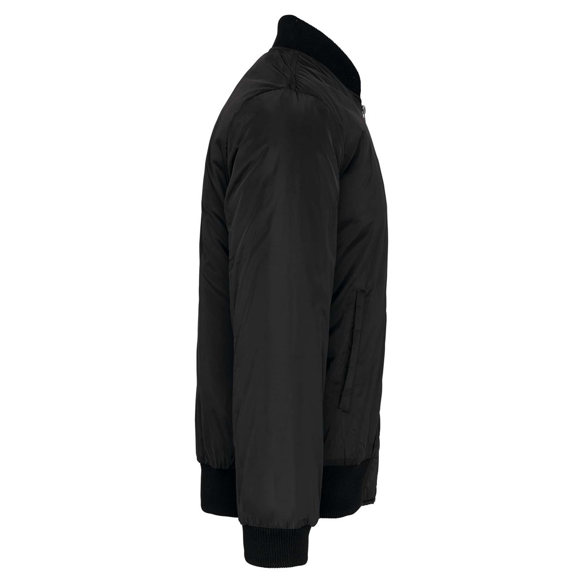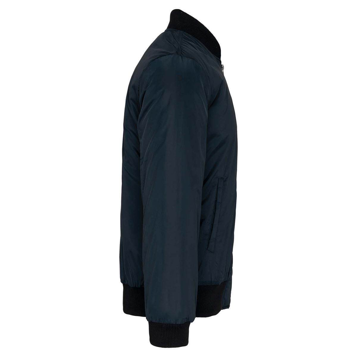 100% polyester. Gewatteerde voering van 100% polyester. Ritssluiting. 2 omzoomde zakken aan de voorkant. Opzetzak met rits en penzak op de linkermouw. Omzoomde binnenzak. 2x2 ribboord aan halsopening, mouwuiteinden en onderkant. 1 rits aan de linkerkant en 1 drukkersrits.